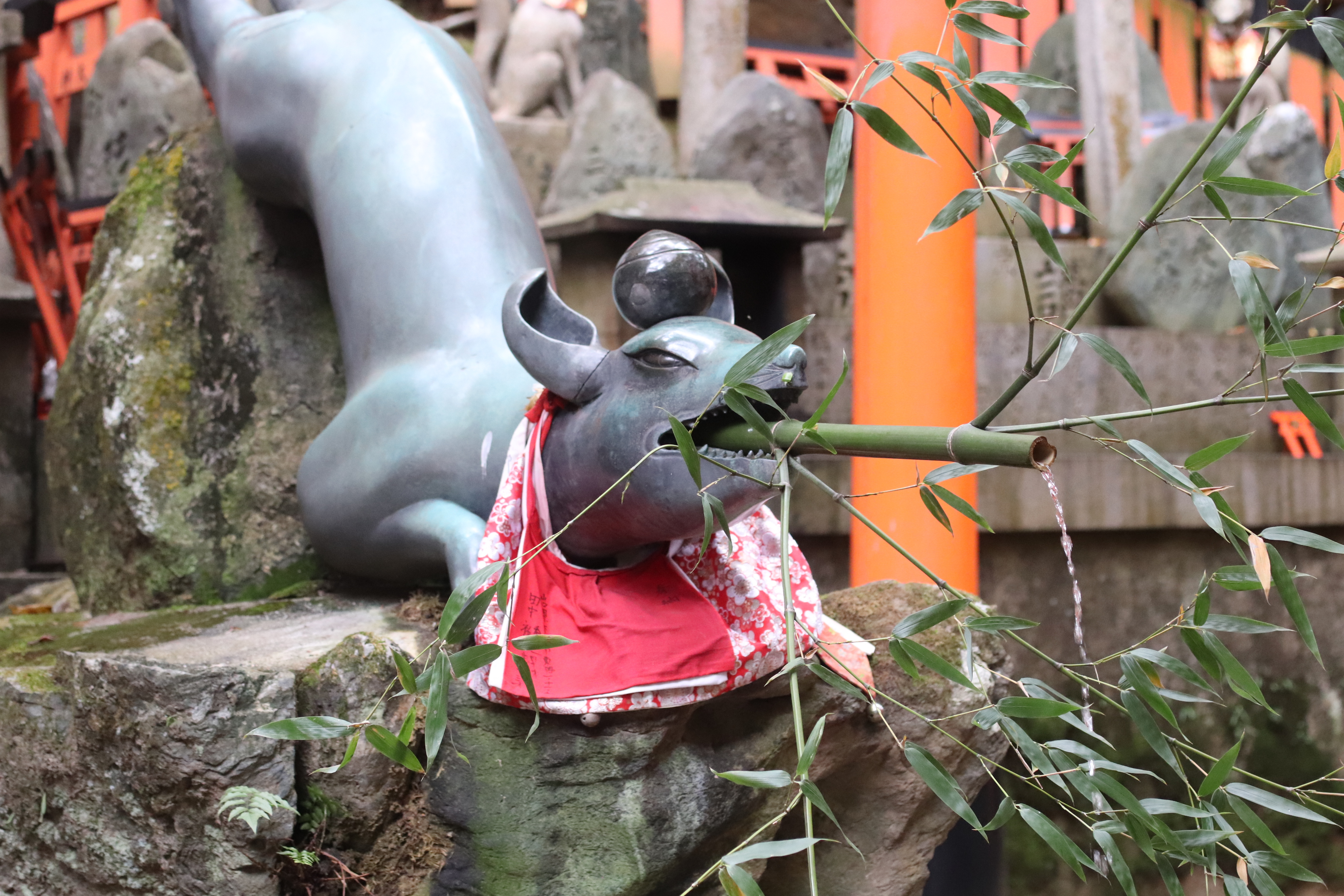 加えた竹筒から水が流れ出していて、多くの方が写真を撮っていかれる場所になります。